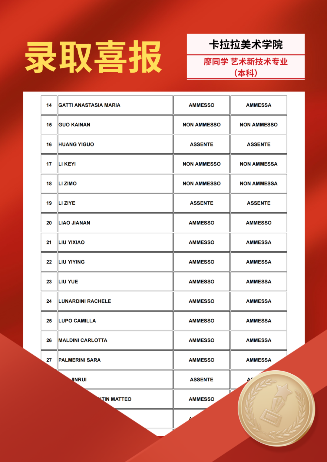 学生录取 | 2024/2025意大利院校录取结果公布(二)