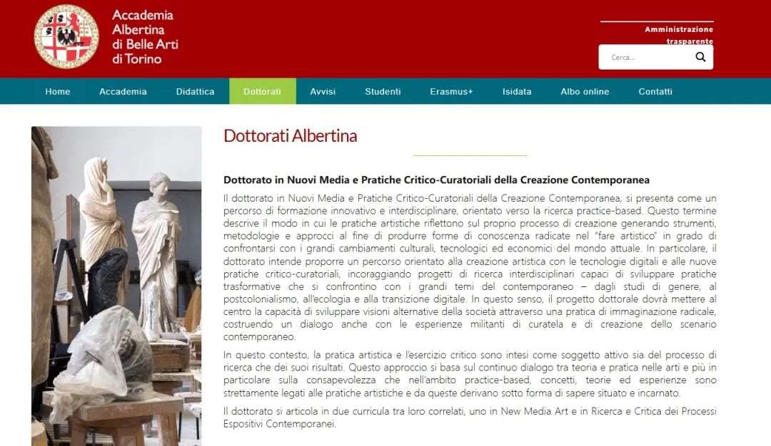 开设课程:文化遗产研究、生产、保护和利用的技术和工具博物馆和美术馆的数字化转型研究都灵美术学院