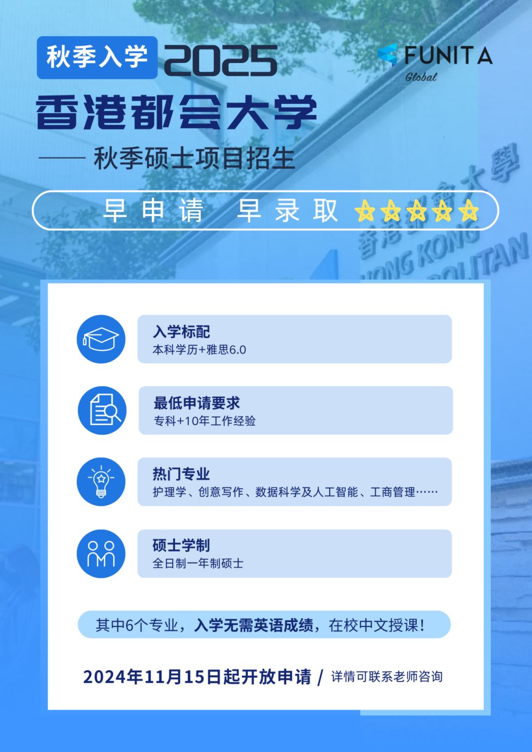 高含金量学位!香港都会大学2025秋季一年制硕士课程,11月15日起接受申请!