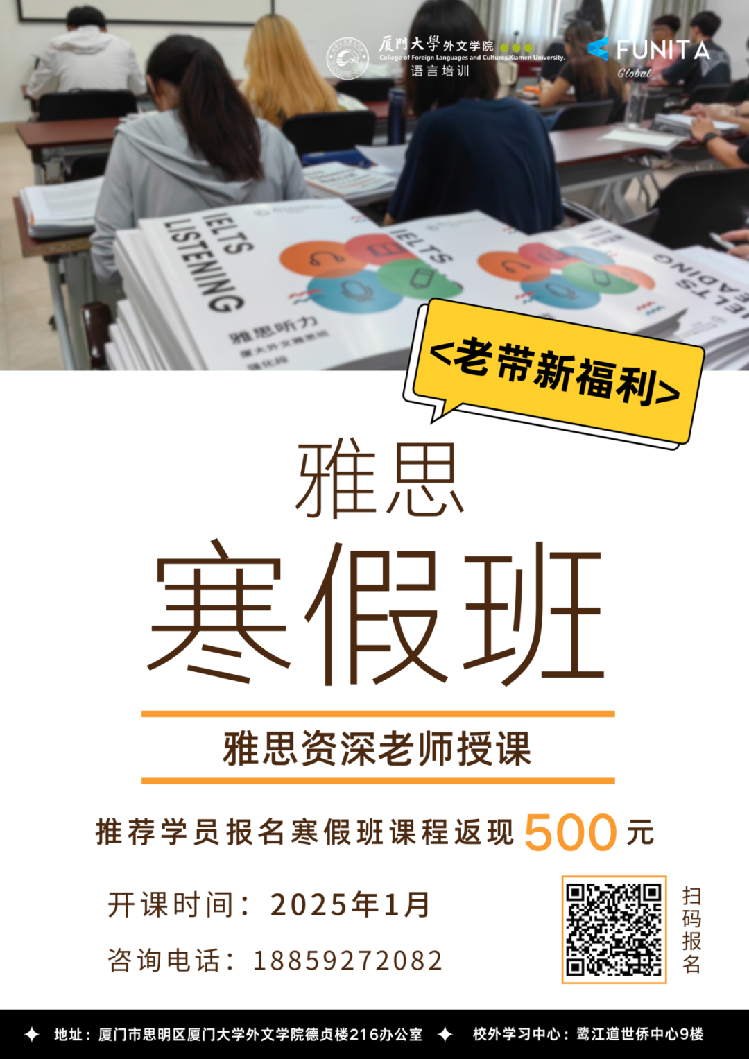 厦大外文雅思新班即将开课,让这个寒假成为你英语学习的新起点!