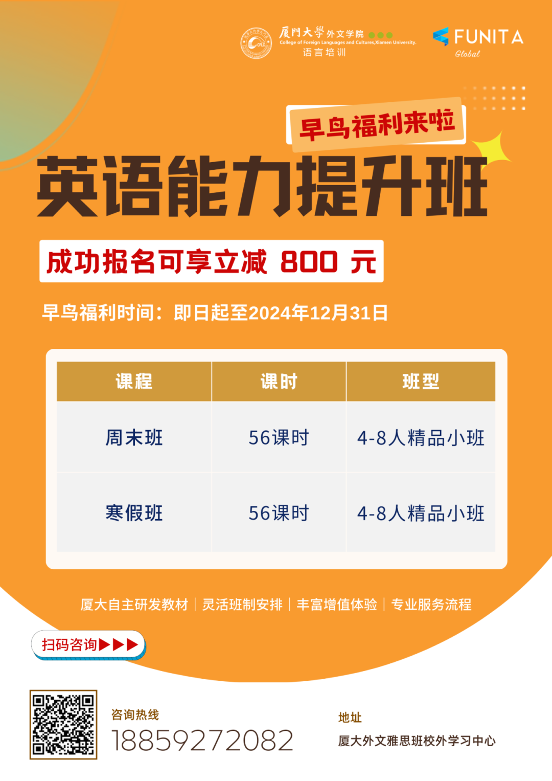 报名英语能力提升班将享受优惠立减800元!