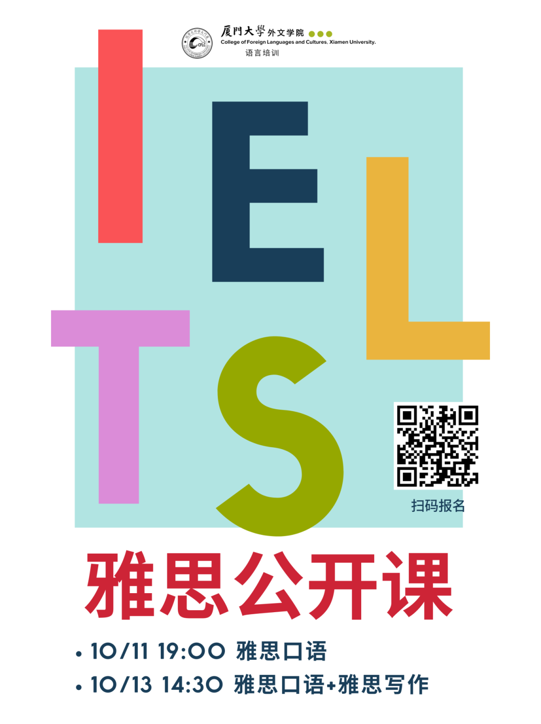 厦大雅思公开课开讲在即,跟着外文老师轻松!