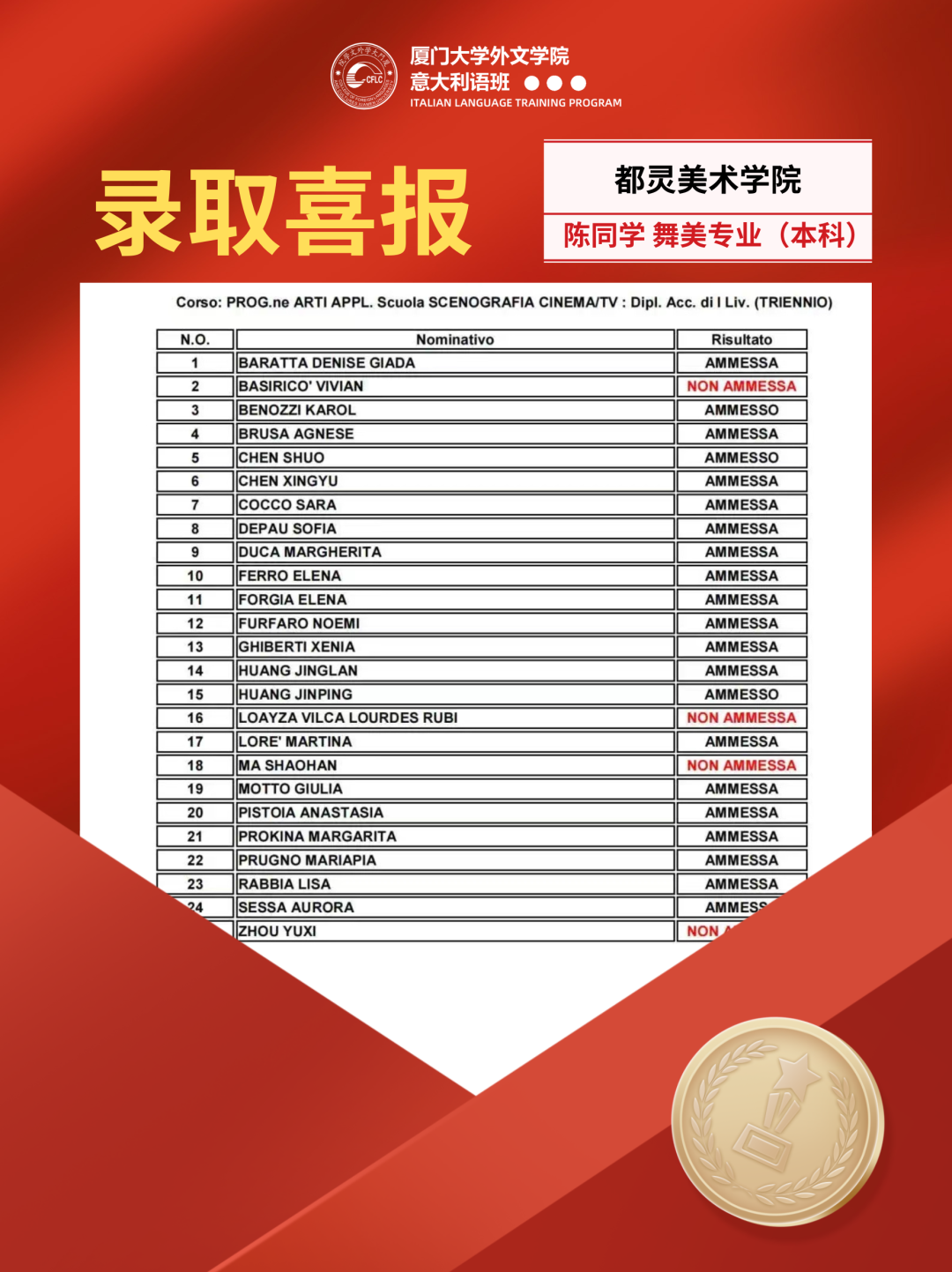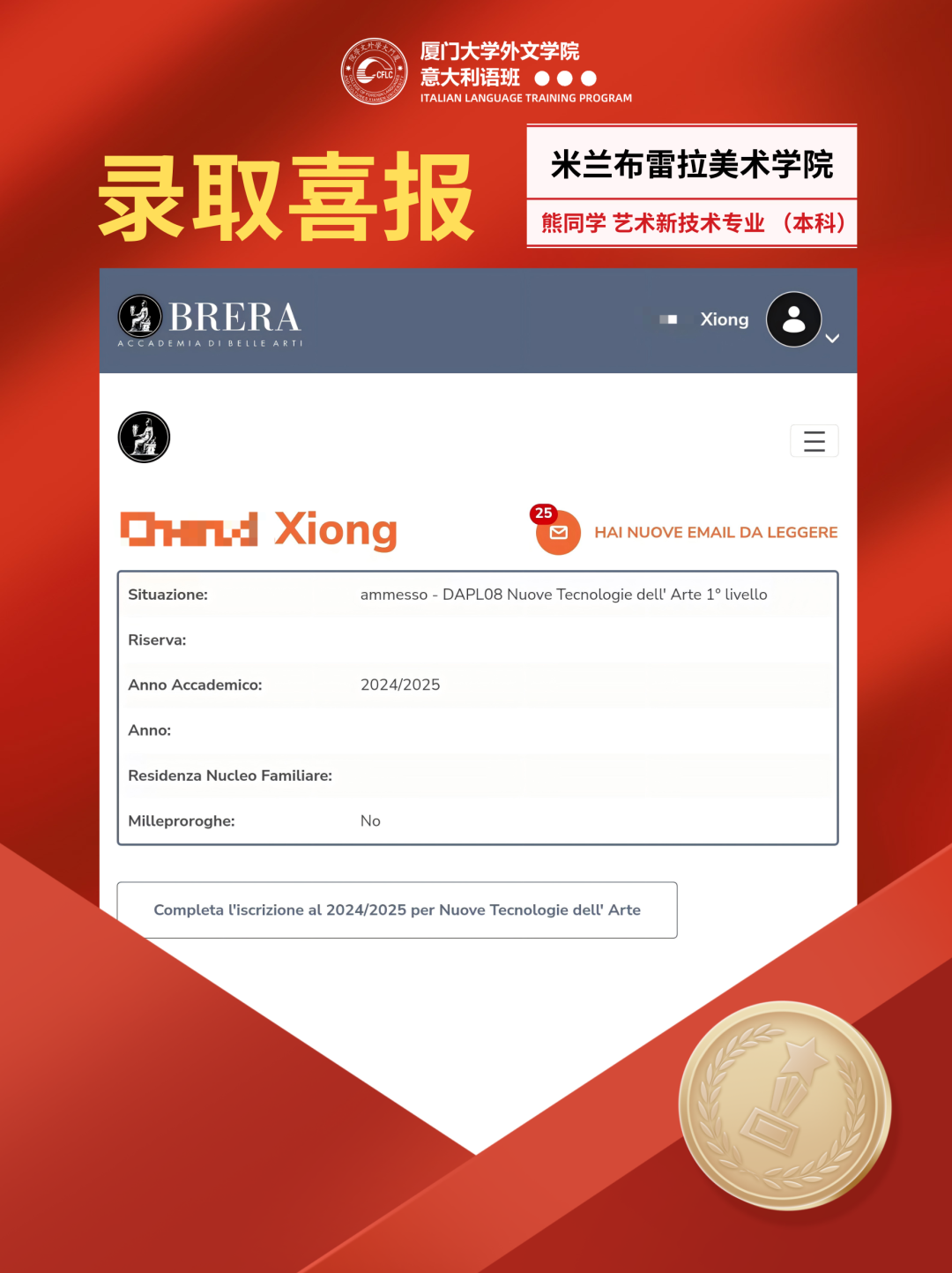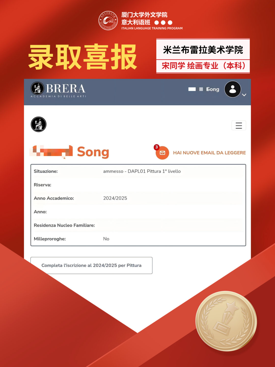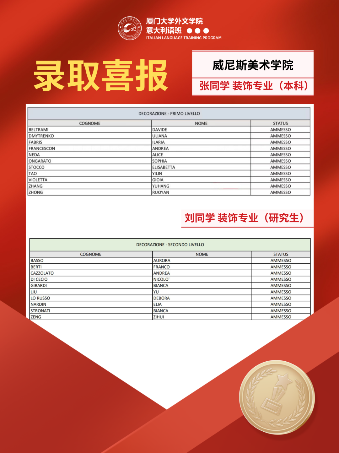 近日,意大利院校频频传来,2024/2025学年录取结果出炉啦!恭喜同学们顺利迈进心仪学府!!
