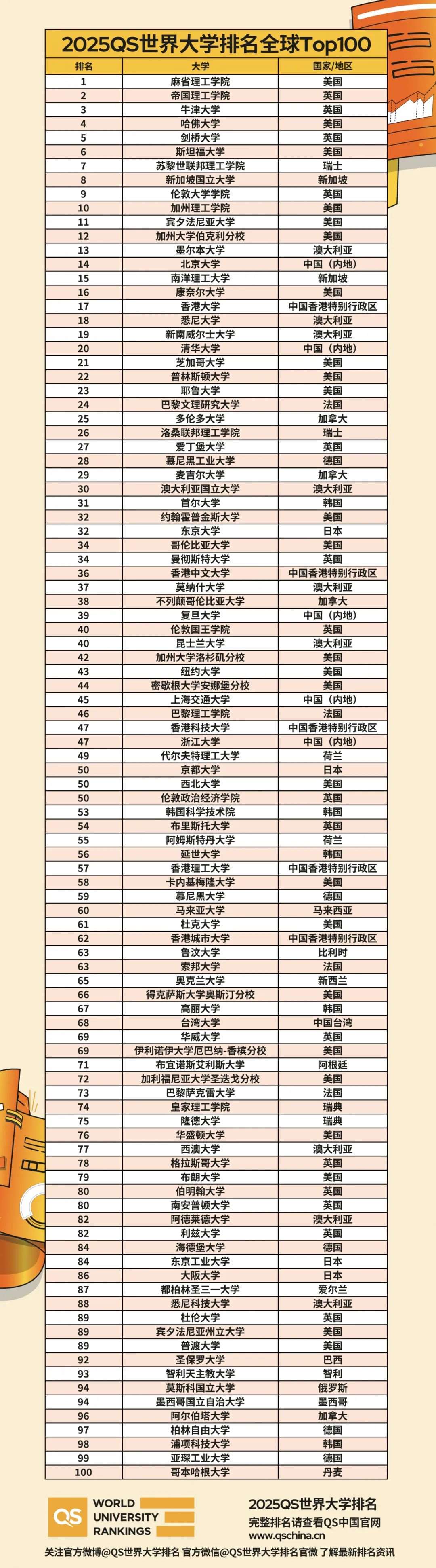 在2025年的排名中,麻省理工学院再次荣登榜首,连续13年稳坐第*宝座。帝国理工学院自2014年后重返全球第二,而牛津大学、哈佛大学和剑桥大学分别位列三、四、五位。北京大学和清华大学表现亮眼,跻身全球前20强,北京大学更是从去年的第17位上升至第14位。