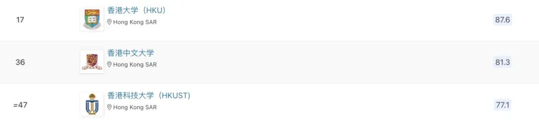 本次排名中,中国香港地区高校表现卓越,共有7所大学跻身榜单,其中5所大学更是打入全球前100强。香港高校的整体进步显著,6所大学的排名均有提升。