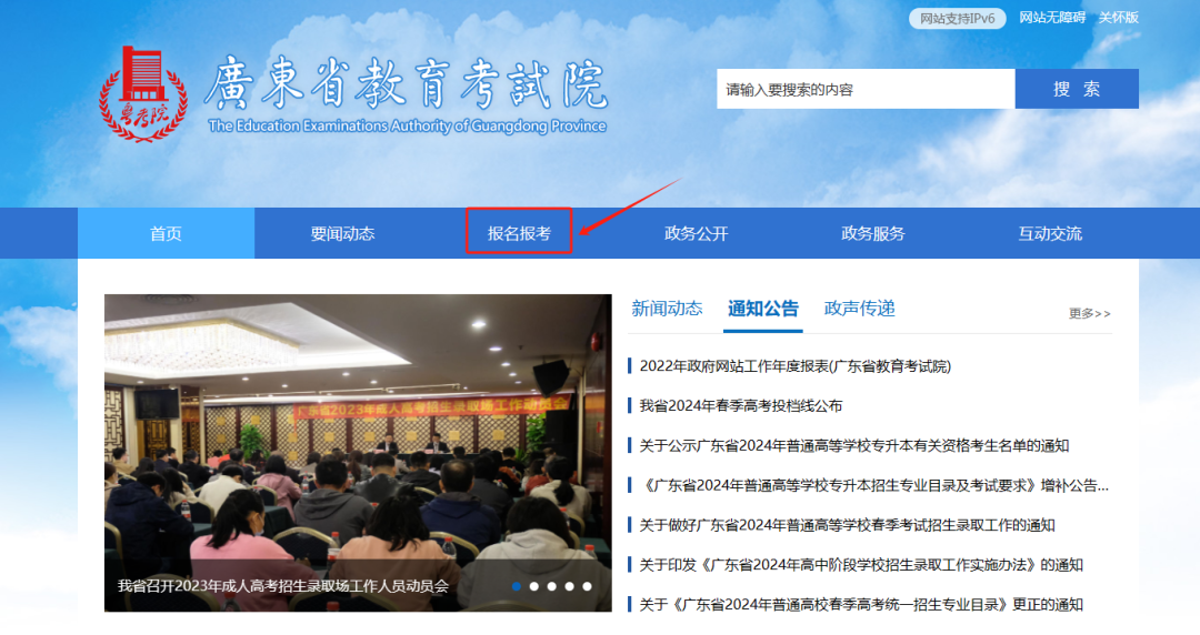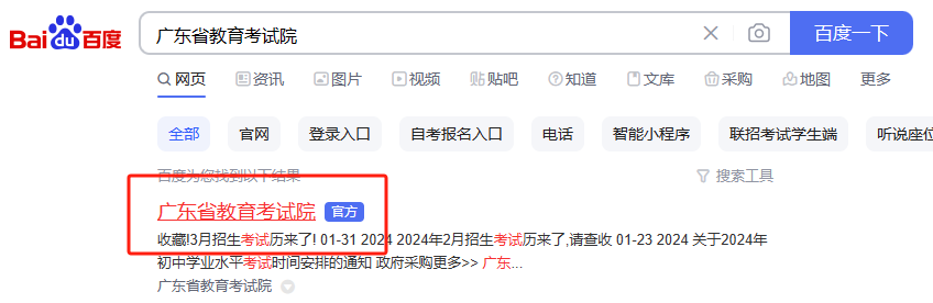 1.浏览器搜索广东省教育考试院,进入官网报名。需要注意的是,非报名期间不开启。