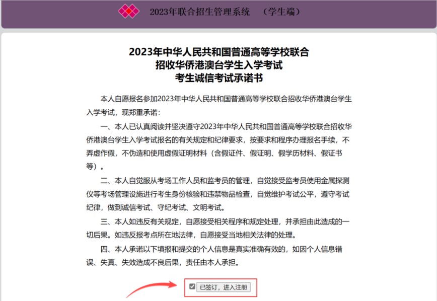7.打钩“签订承诺书”,点击“进入注册”。