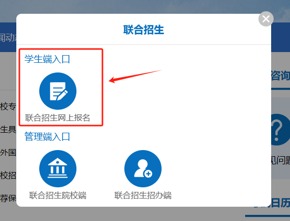 3.在“报名系统”下面选择联合招生。