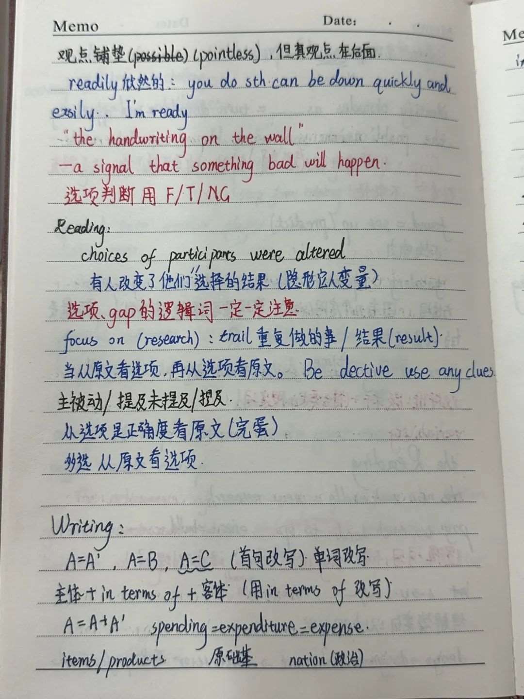 读,越读越简单。当然这里必须指的是每一次高效地做阅读,用正确的方法+合理的时间+联系+反思=磨阅读高分。三篇阅读理解、争辩、反思的过程我一般两小时起步,很磨时间但这很有必要。每次做新的阅读,都很忐忑但也很好奇自己悟到的新方法、学到的新知识会不会得到应用。进入心流的阅读很让人享受。