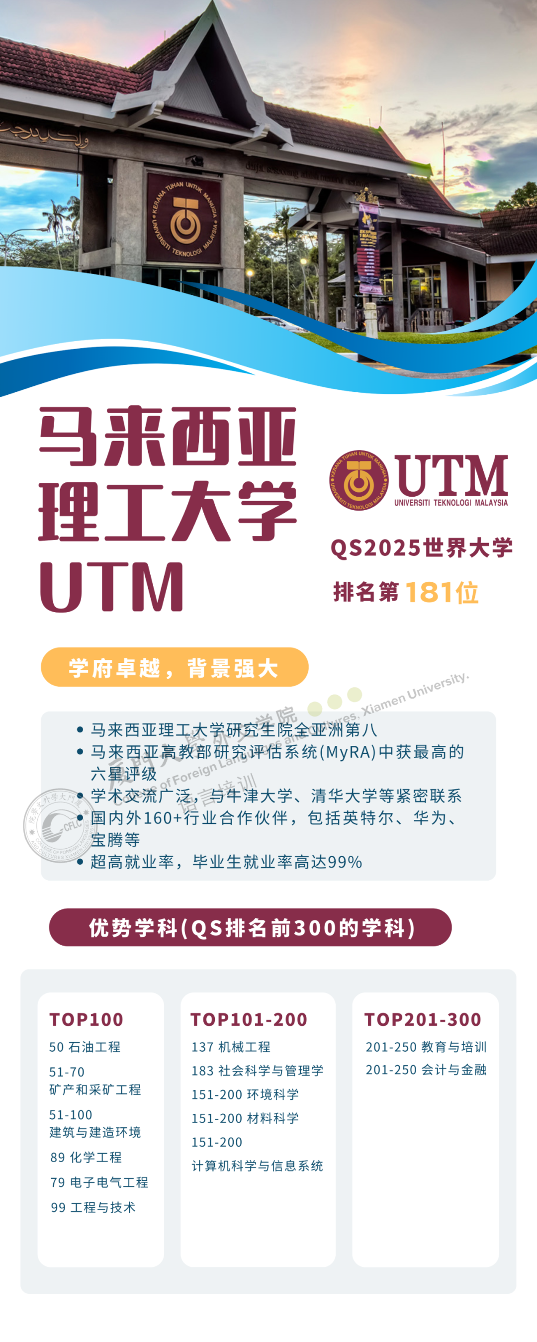 2025厦大外文留学预备班| 高考后世界学校!弯道超车马来西亚公立大学,学费仅2万/年!