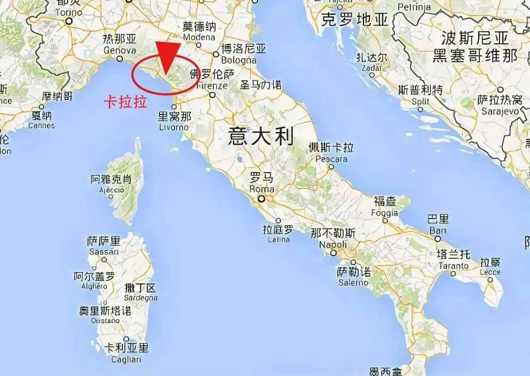 卡拉拉(Carrara),拉丁语又称“石矿”,是一座建在大理石上的城市,有“世界大理石之都”之美誉,也是米开朗基罗的故乡。位于阿普亚内山山脚的卡里翁内河畔,马萨的西北面、拉斯佩齐亚的东面,西距利古里亚海5公里。