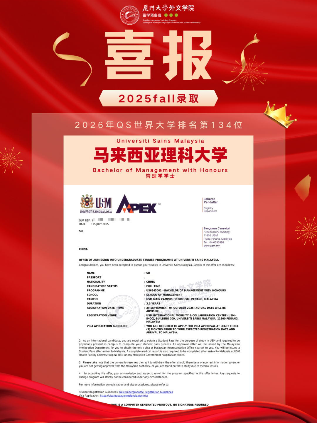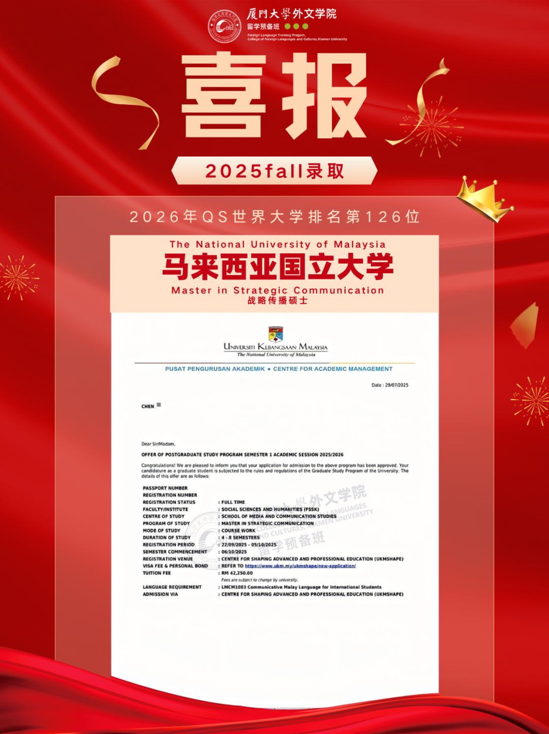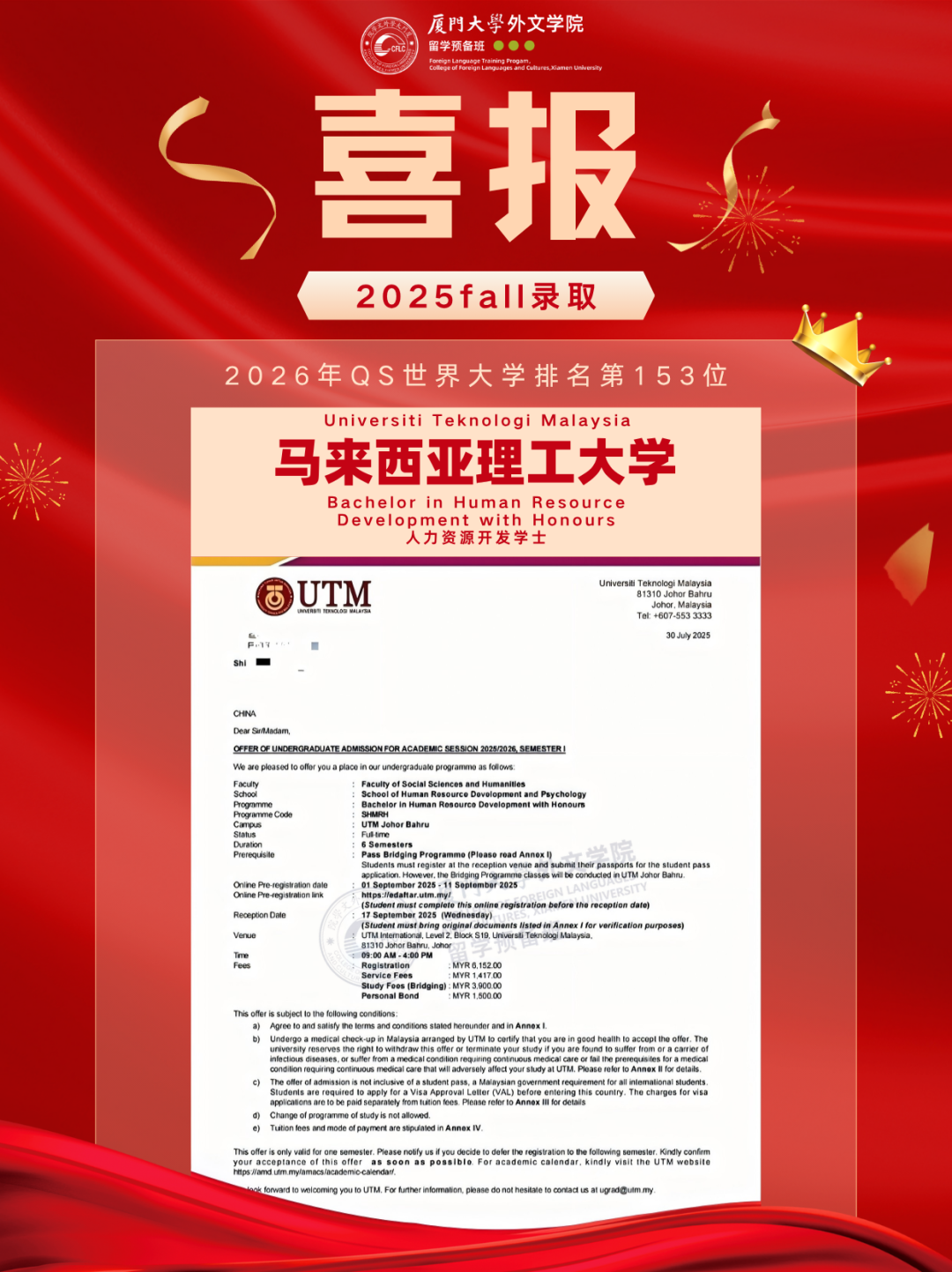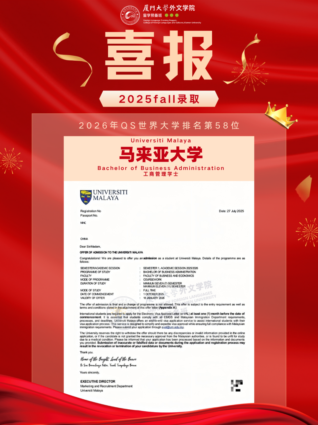 2025马来西亚录取Offer新鲜出炉,换条赛道也能读QS前100!