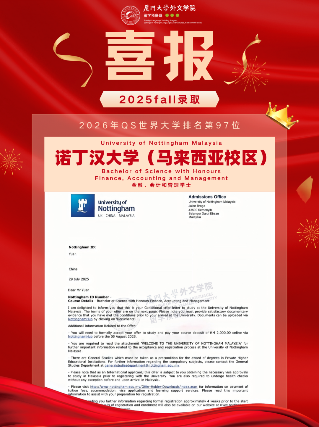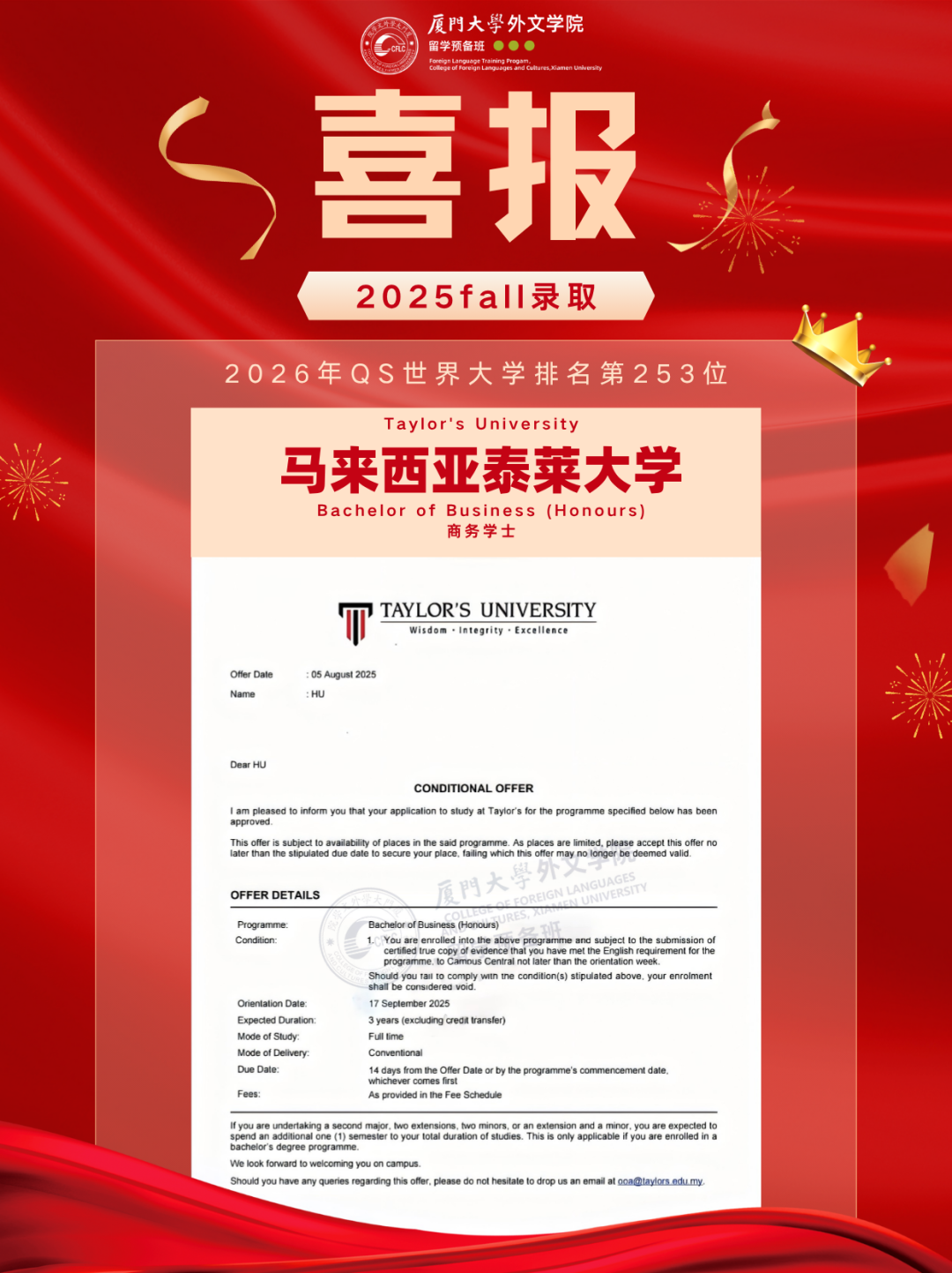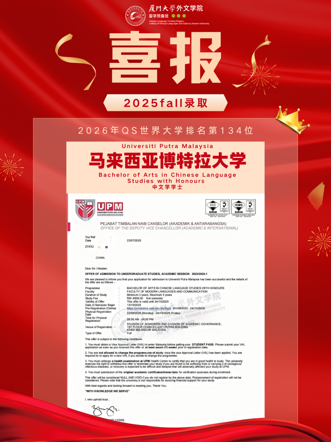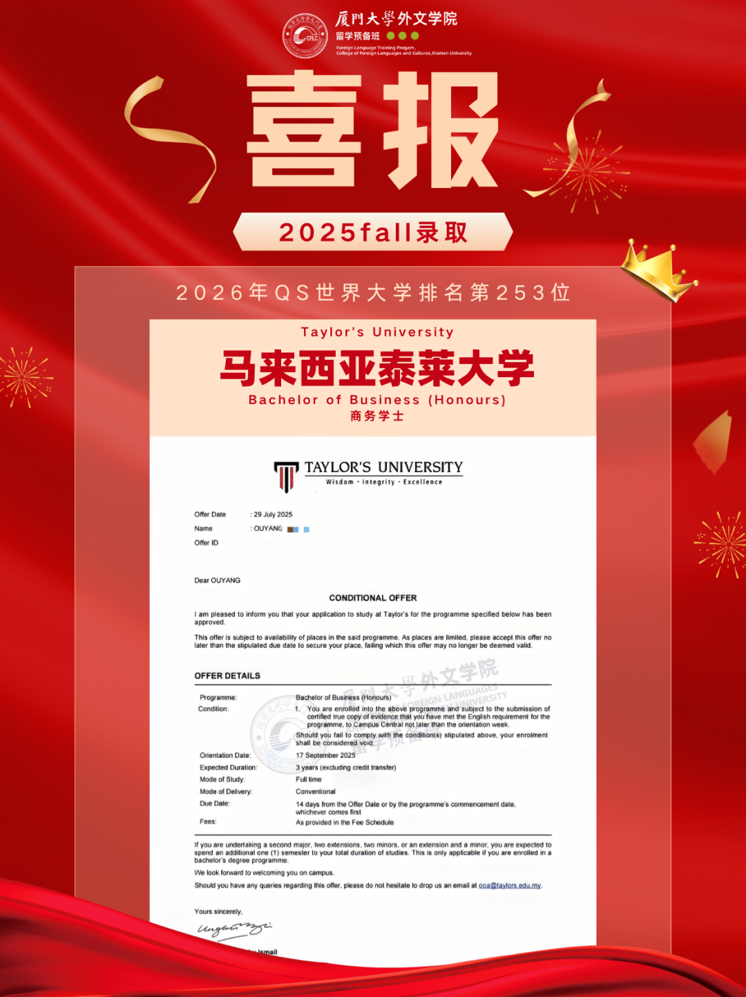 2025马来西亚录取Offer新鲜出炉,换条赛道也能读QS前100!