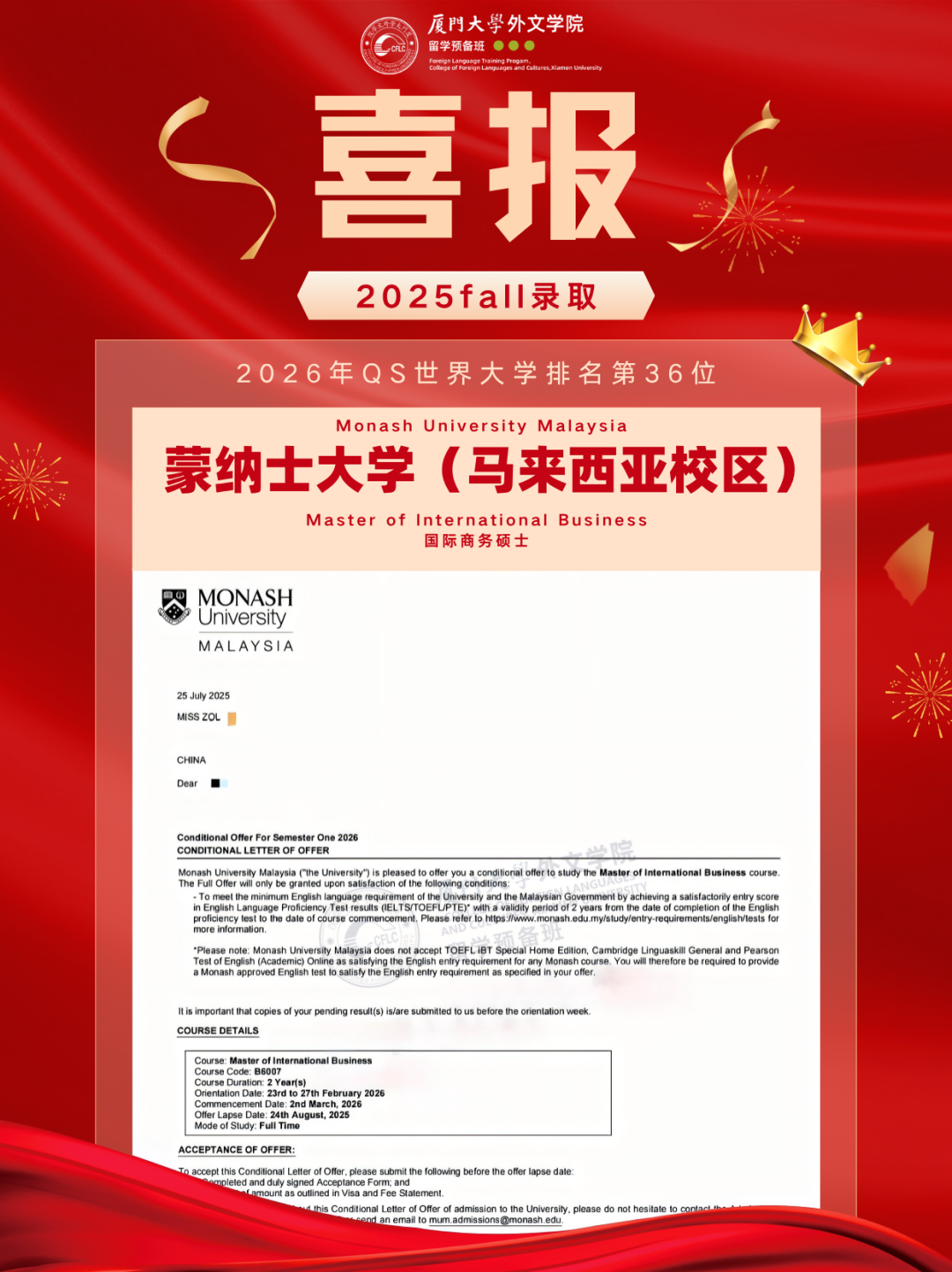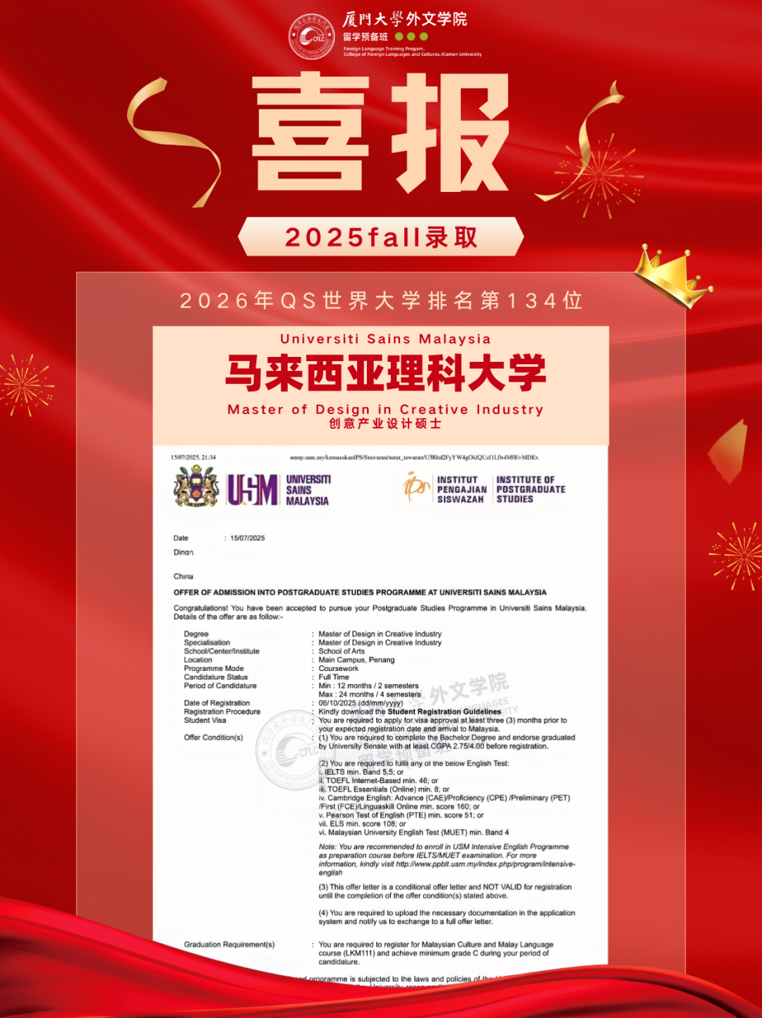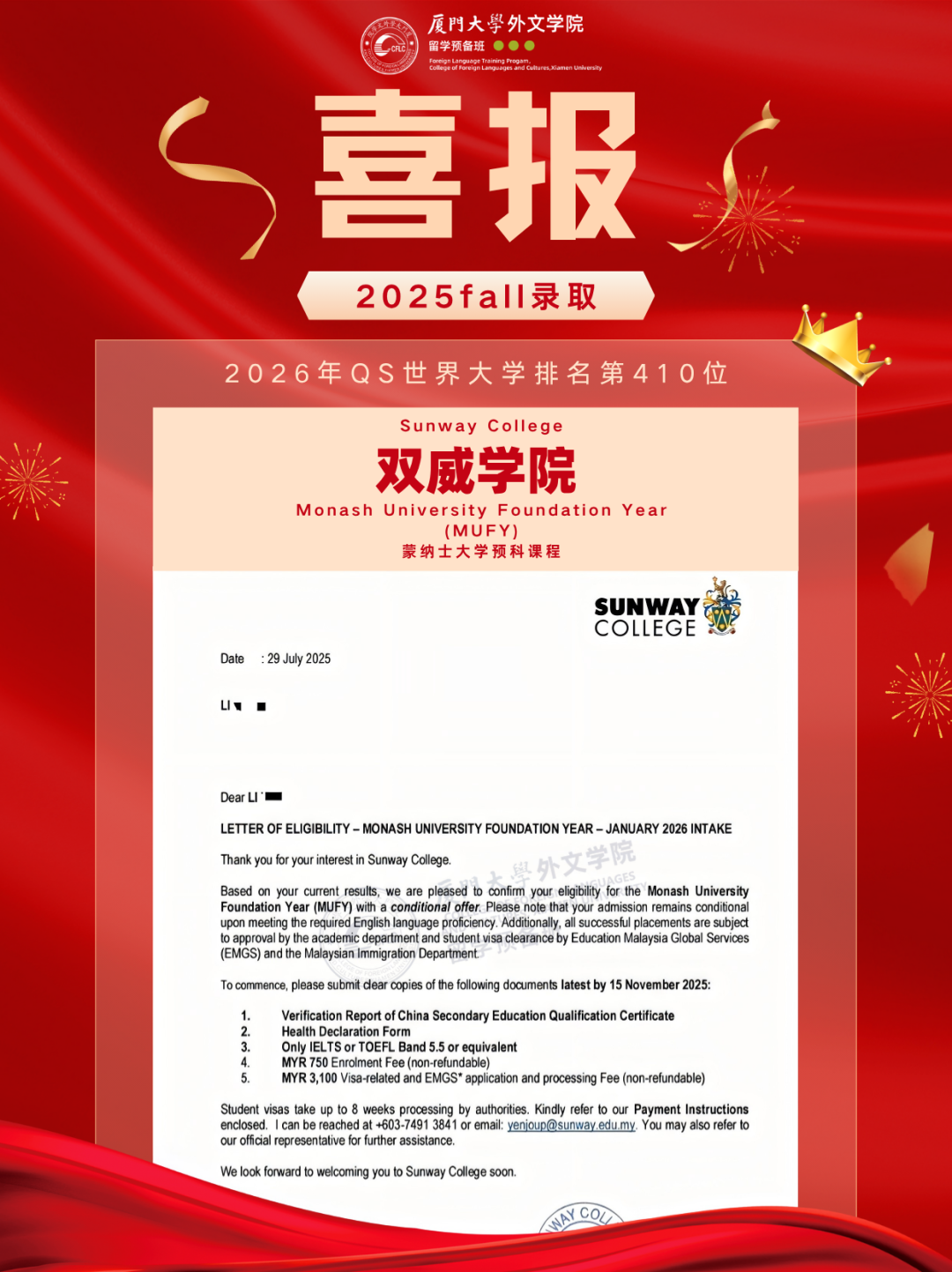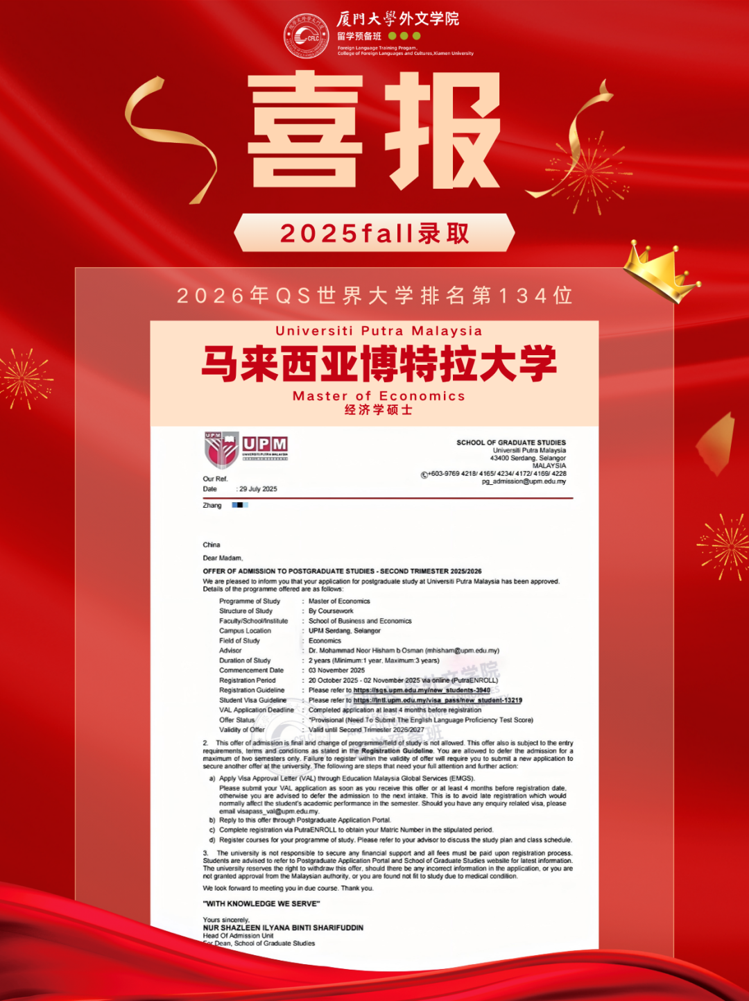 2025马来西亚录取Offer新鲜出炉,换条赛道也能读QS前100!