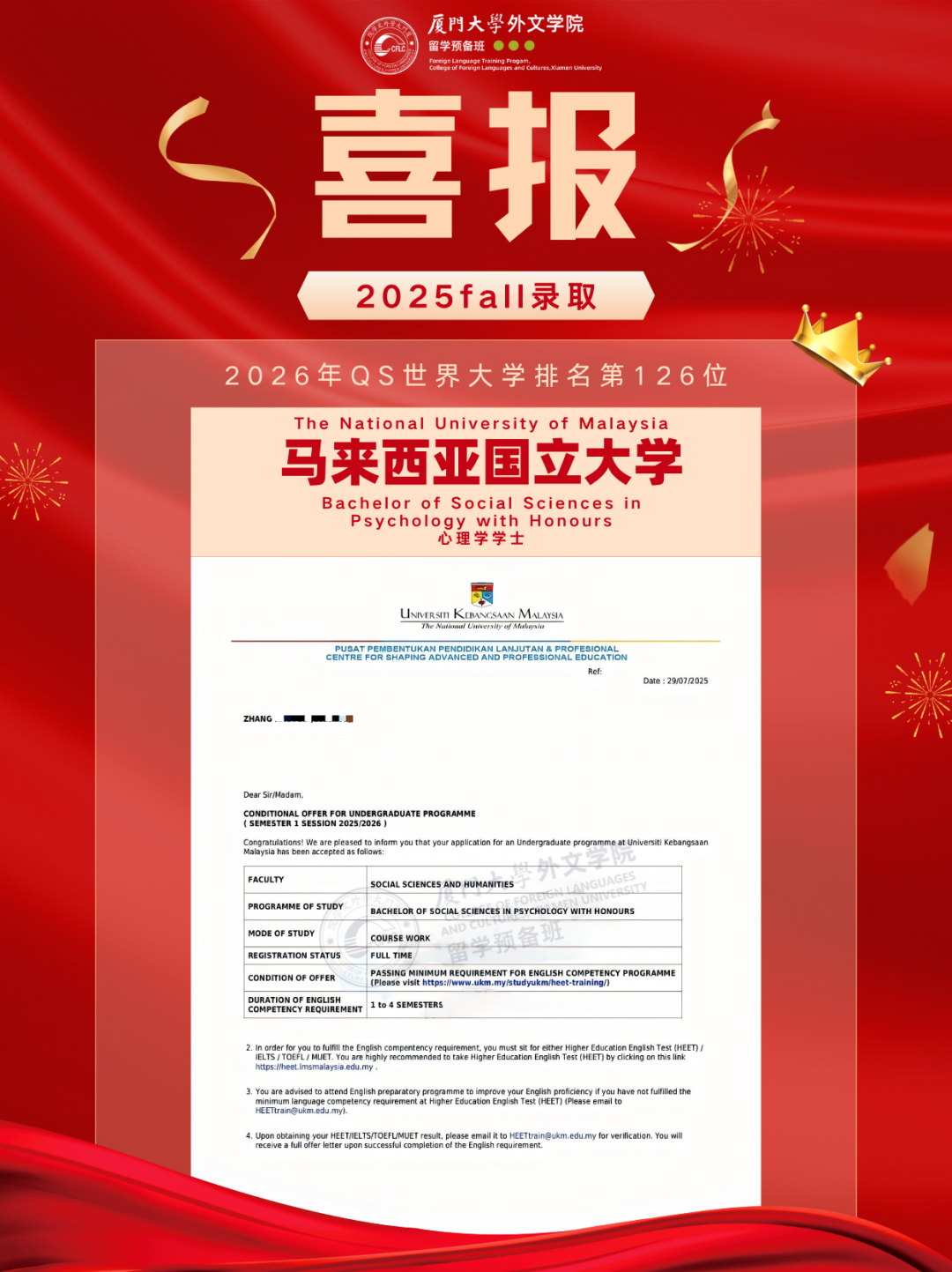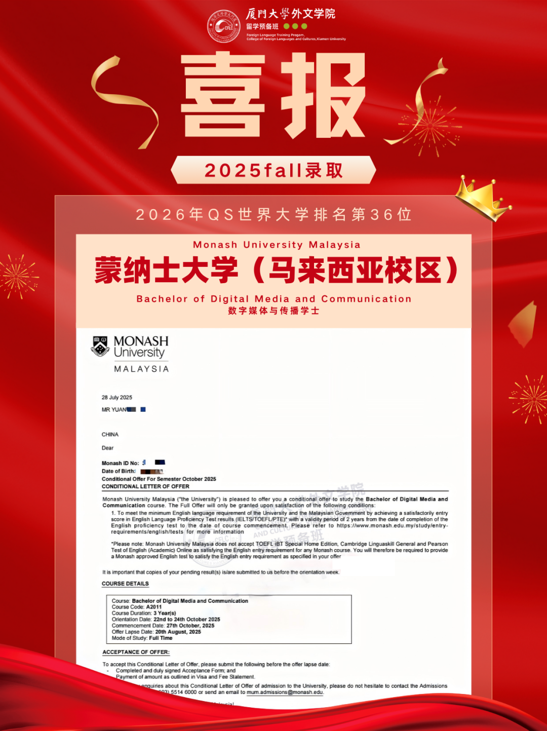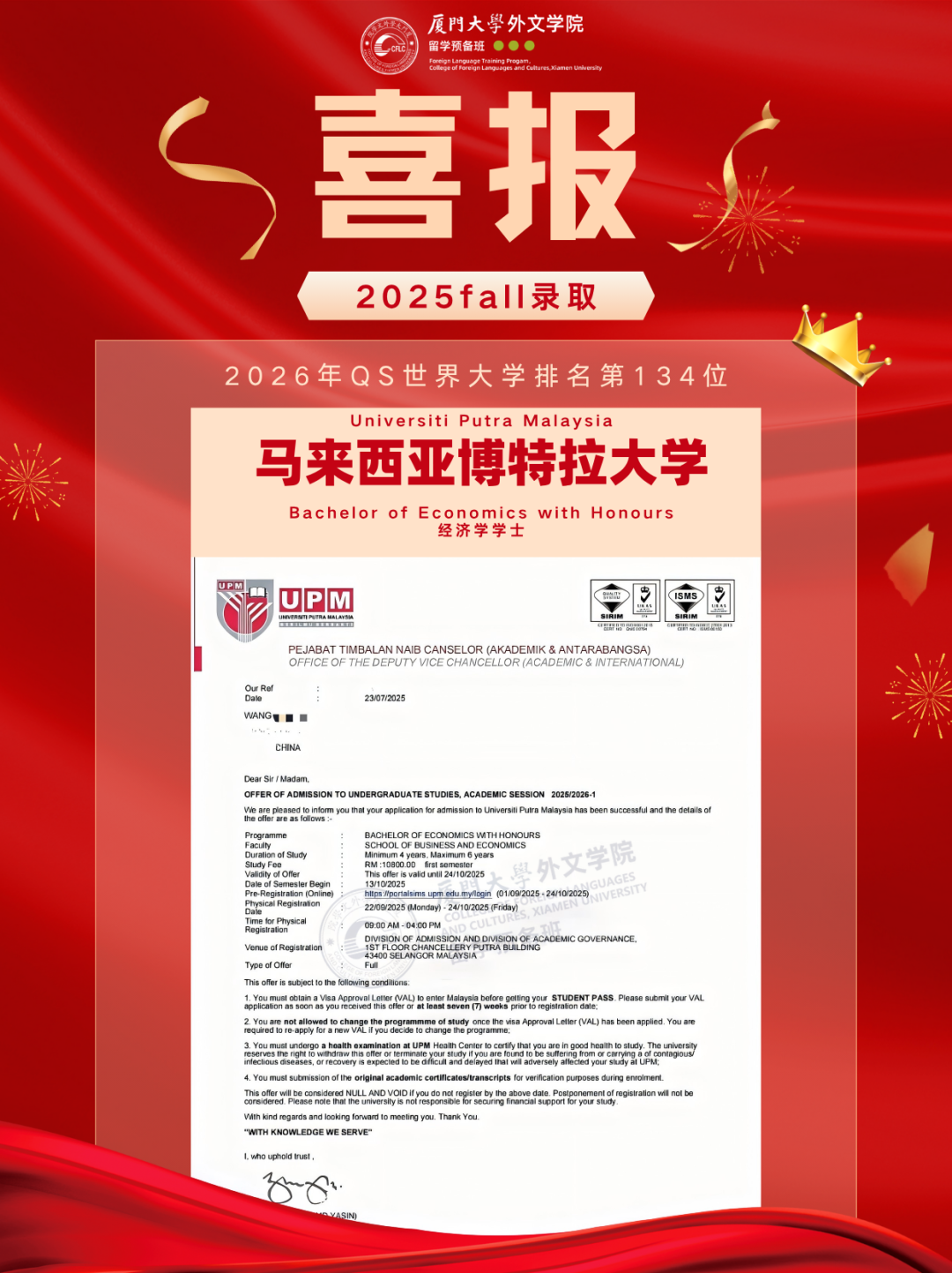 马来亚、马国立、马理科、博特拉、蒙纳士马来校区、泰莱、双威……offer喜讯一波接一波刷屏!