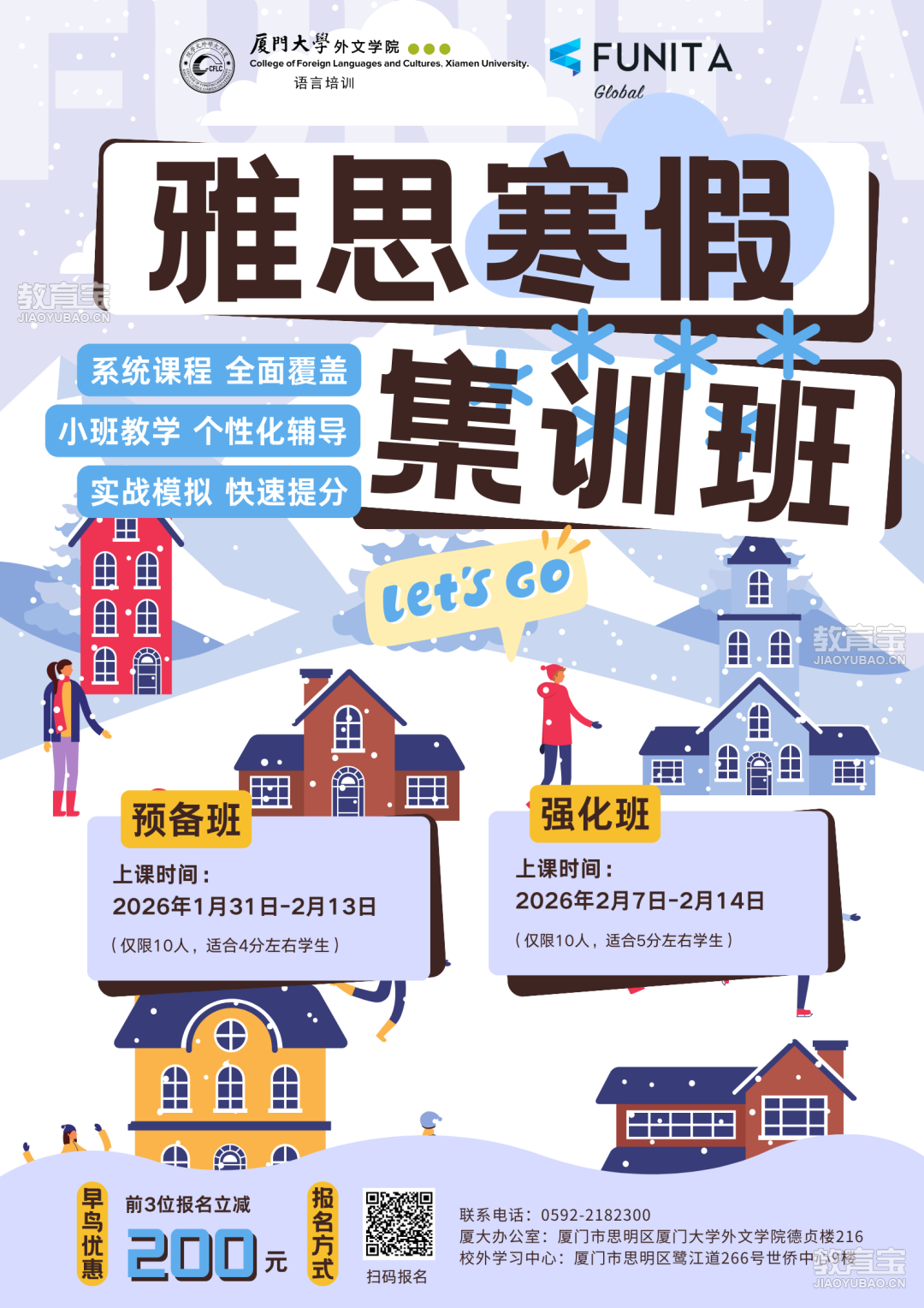 厦门及周边的初高中生、大学生们,你们准备好了吗?我们特别开设「厦大雅思寒假集训营」,专为中学段+大学萌新打造的英语加速器,提前锁定海外学校、港澳升学、夏令营交换、读研保研……让分数直接变成选择权!